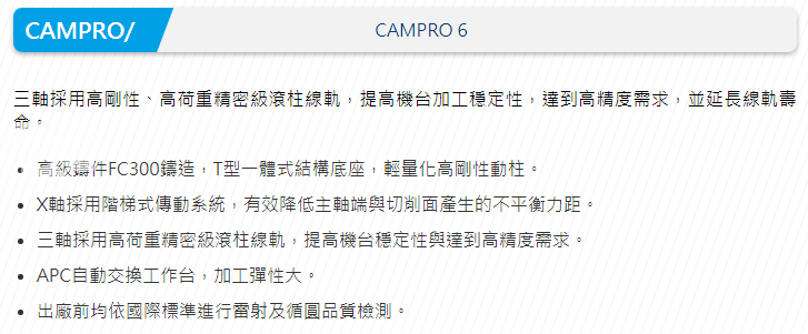 產品型號:|CAMPRO6臥式加工中心|CAMPRO6臥式加工中心|CAMPRO6臥式加工中心|CAMPRO6臥式加工中心|CAMPRO6臥式加工中心|